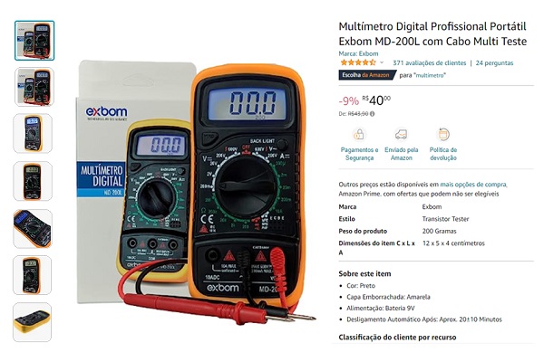 Multímetro Digital Profissional com Cabo Multi Teste Exbom MD-200L.